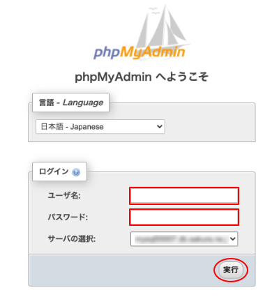 ユーザー名、パスワードを入力して 『実行する』をクリックし、ログインしてください。