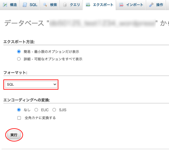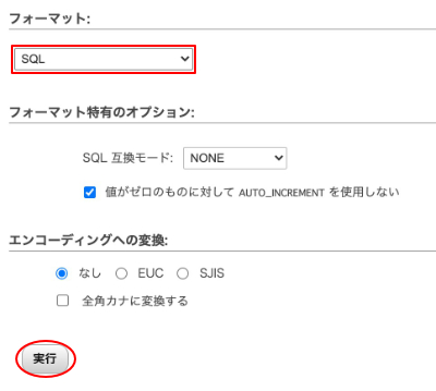 ・処理に失敗する場合は、データベースやテーブルを小さくしたり分割したりするなどで、エクスポートをお試しください。