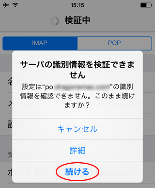 8.下記画面が表示されますので、「続ける」をタップしてください。