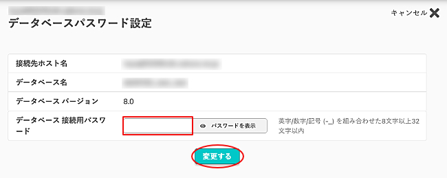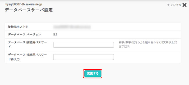 3.『データベース 接続用パスワード』に新しいパスワードを入力し『変更する』をクリックします。