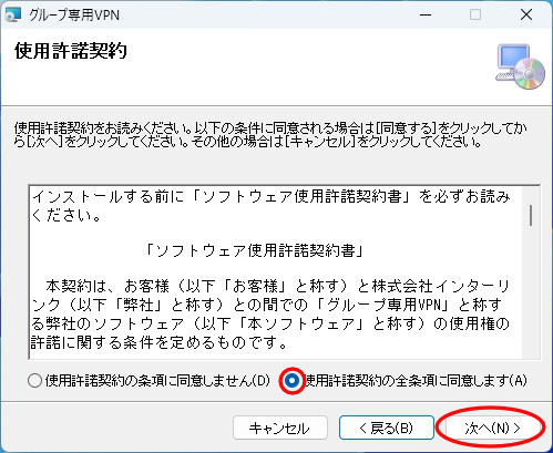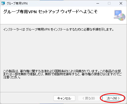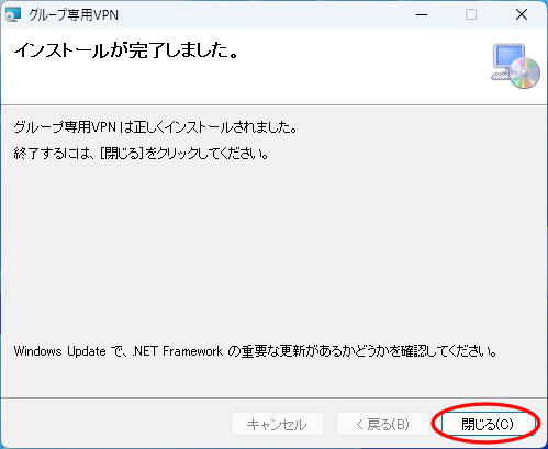 インストールが完了しましたら、グループ専用VPN Windowsアプリの使い方をご覧ください。
