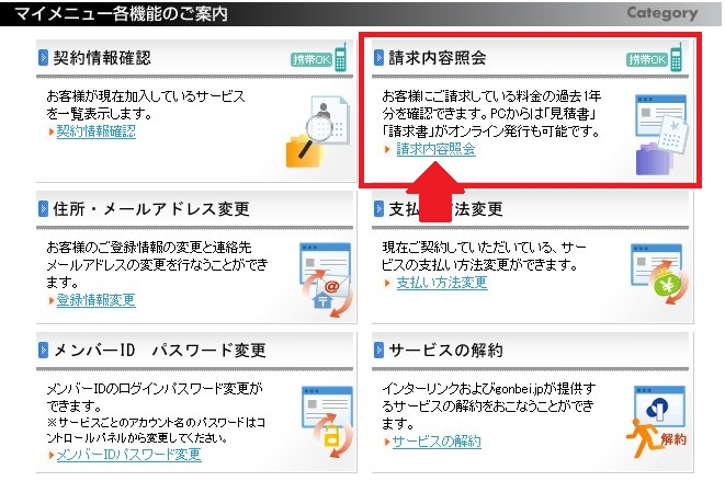 2.「請求内容照会」を選択します