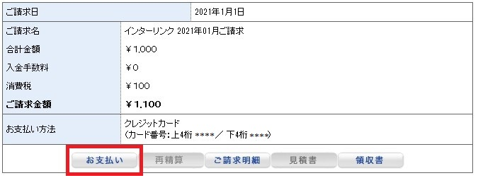 4.表示される請求内容の「お支払い」ボタンをクリックします