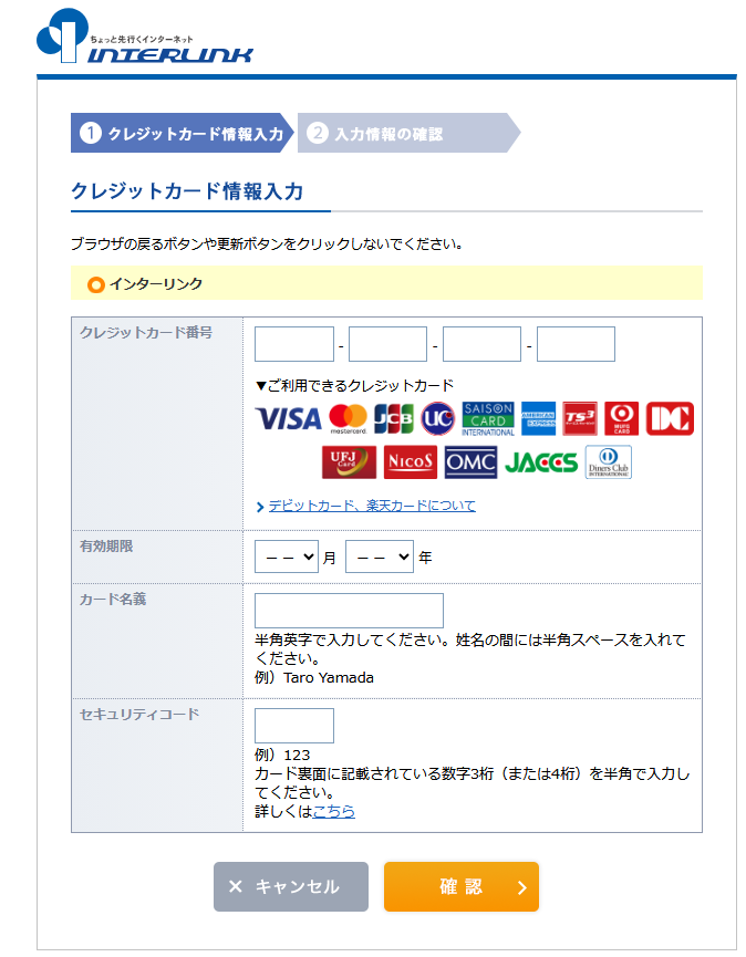 ・お支払い方法はクレジットカードのみとなります。また、お支払い手続き完了後に、サービスのお支払い方法は、手続きの際にご登録いただいたクレジットカードに変更されます。