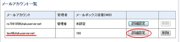 1.変更するメールアドレス横の「詳細設定」ボタンをクリックします。
