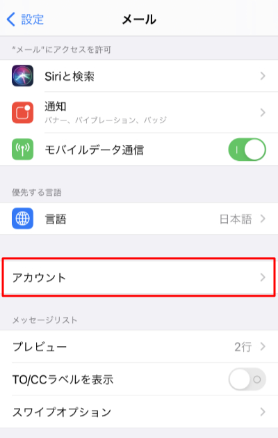 2.設定画面にて『メール』をタップします。