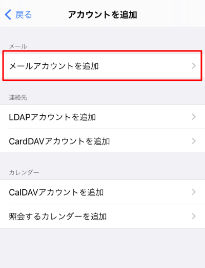 6.『メールアカウントを追加』をタップします。