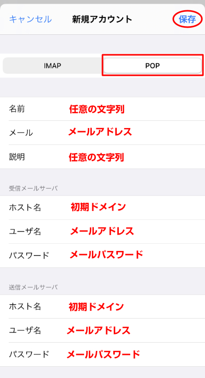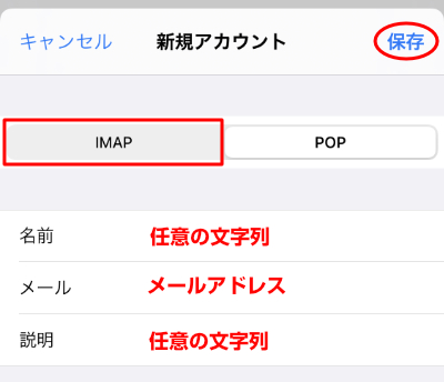※IMAPで送受信する場合は、IMAPのタブをタップしてください。