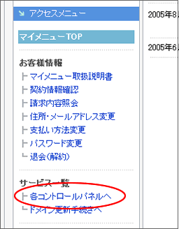 にログインし、「コントロールパネルへ」をクリックします。