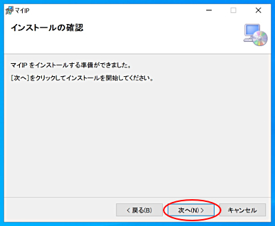 4.インストール確認画面になりますので、「次へ」をクリックします。