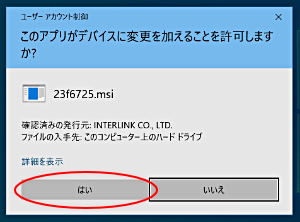 6.ユーザーアカウント制御の画面になりますので「はい」をクリックします。