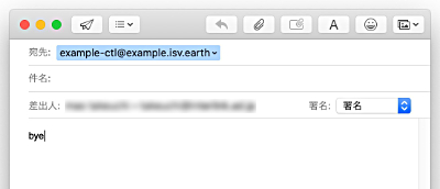 メーリングリストの参加者であれば、「 bye 」と書いたメールを直接「メーリングリスト名-ctl@アカウント名.isv.earth」へ送信することで、 自身のみ退会することも可能です。