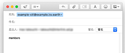 メーリングリストの参加者であれば、「 members 」と書いたメールを直接「メーリングリスト名-ctl@アカウント名.isv.earth」へ送信することでも、リストメンバ一覧を取得できます。