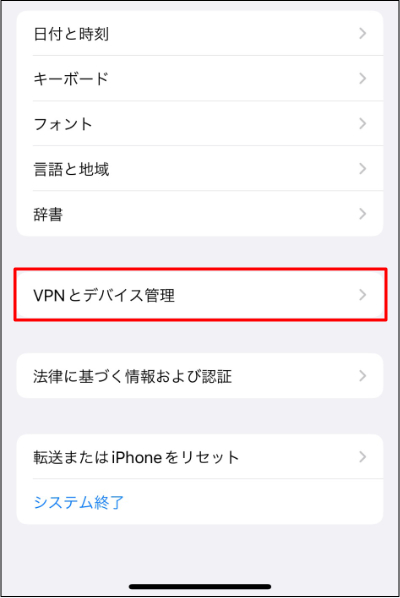 3.「VPNとデバイス管理」をタップします。