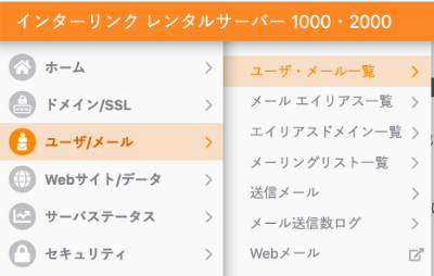 2.ユーザ/メールから『ユーザ・メール一覧』をクリックします。
