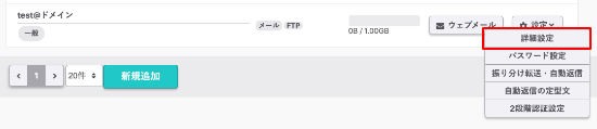 3.ウイルスチェック設定をするメールアドレスの『設定』をクリックし『詳細設定』を選択します。