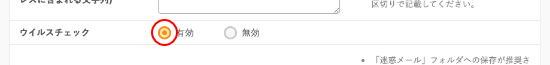 4.メール利用範囲のウイルスチェックの『有効』にチェックをいれ、『保存』するをクリックします。