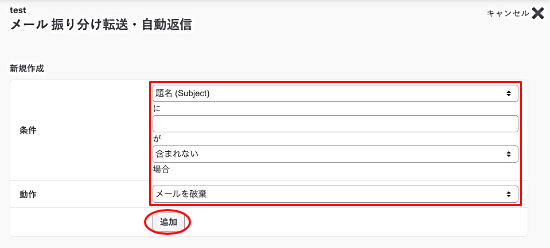 3.条件・動作を入力し『追加』をクリックします。