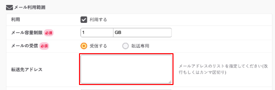 転送先メールアドレス :送信元メールアドレスと同じ
