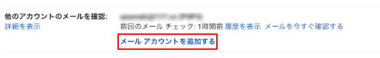 3.「アカウントとインポート」タブ内の「他のアカウントのメールを確認」の『メールアカウントを追加する』をクリックします。