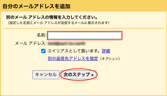 設定したアカウントでメール送信も行いたい場合は、「はい」を選択し『次へ』をクリックします。