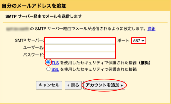 全ての項目を入力し、『アカウントを追加』をクリックします。