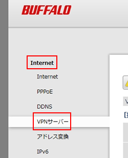 2.VPNサーバー機能を有効にします。「Internet」→「VPNサーバー」と進みます。