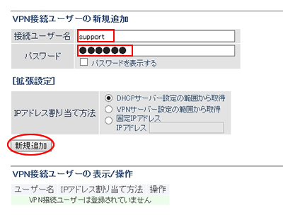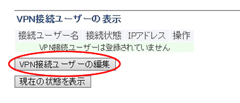 4.VPN接続するユーザーを追加します。画面下の「VPN接続ユーザーの編集」をクリックすると、VPN接続ユーザー名の新規追加画面になります。