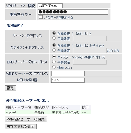 ※複数人で利用する場合は、複数のVPN接続ユーザーを作成してください。