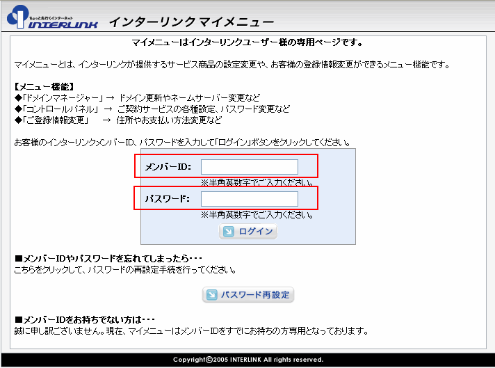 マイメニューよりメンバーID・パスワードでログインします。 |