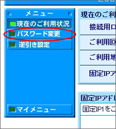 パスワードを変更する場合、画面左側の「パスワード変更」をクリックします。 |