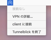 3.「OpenVPN GUI」をダブルクリックして起動し、タスクトレイにあるアイコンを右クリック→サーバーリストからclient選択して、「接続」をクリックします。