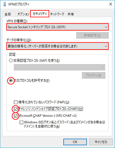 Windows10で「マイIPソフトイーサ版」のMS-SSTP接続の設定を行う場合は下記をご参照ください。