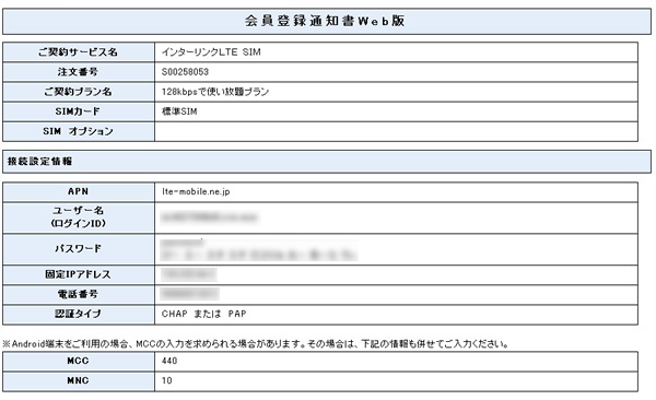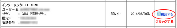 .対象サービスにある「確認する」をクリックします。(例)インターリンクLTE SIM