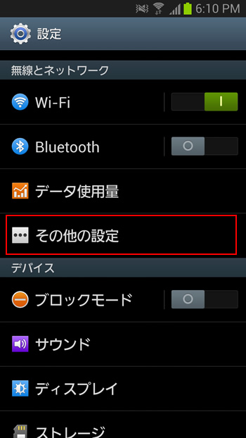 2.「無線とネットワーク」にある「その他の設定」をタップします。