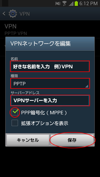 Androidで「セカイVPN」のPPTP接続を行う場合は下記をご参照ください。