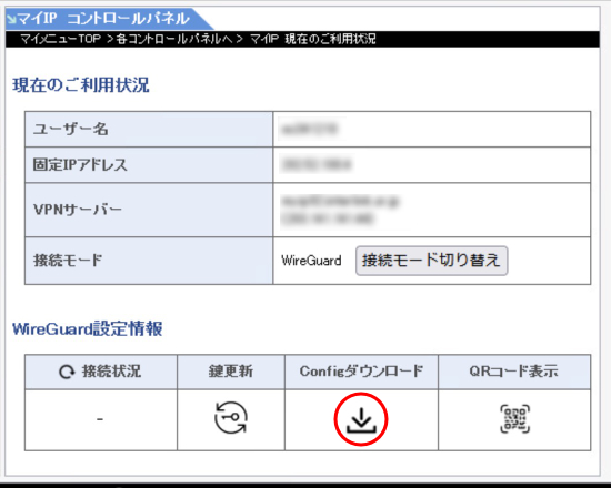 | マイIPでWireGuard接続を行う前に接続モードの切り替えが必要です。まだお済みではない場合は、こちらよりお手続きください。 |