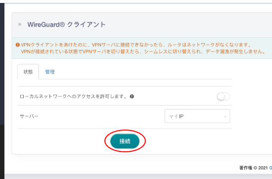 なお、ルーターの側面にあるトグルスイッチの切り替えで、WireGuardのON/OFFが可能です。