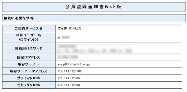 .会員登録通知書Web版が表示されますので、設定情報をご確認ください。
