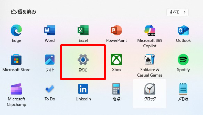 1.Windowsマークより「設定」をクリックします。