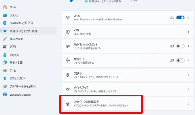 3.「ネットワークの詳細設定」をクリックします。
