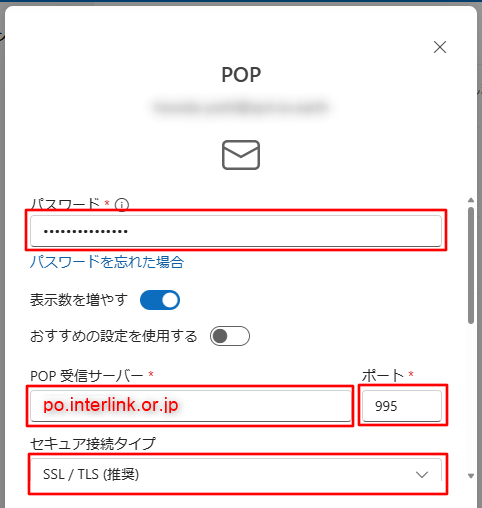 | POP受信サーバー |