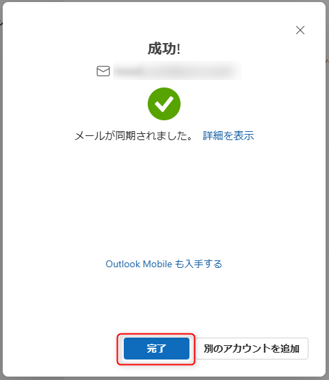 7.成功と表示されたら設定は完了です。「完了」をクリックしご利用ください。