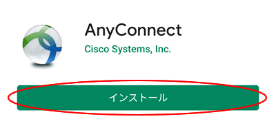1.Google Play Storeよりアプリをインストールします。Google Play Storeから「anyconnect」で検索していただくか、以下URLよりインストールを行ってください。