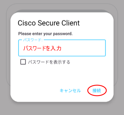 13.以下の画面でパスワードを入力して「接続」をタップします。