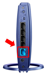 2.ホームゲートウェイ(PR-500KI等)の「LANポート」と、ルーター背面の「インターネット」ポート(青色のコネクタ)をLANケーブルで接続して電源を入れます。