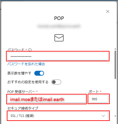 | POP受信サーバー |