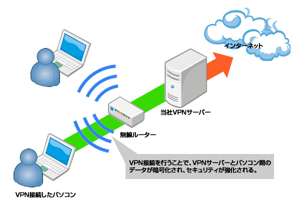 当社VPNサーバーとお客様のパソコン間のデータはVPNで暗号化されます。