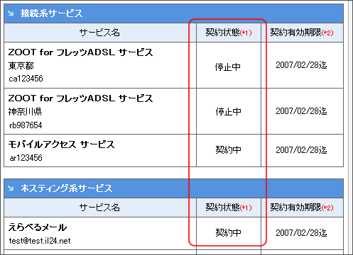 .契約状態が表示されます。サービスのご契約状態をご確認ください。
