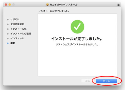 インストールが完了しましたら、セカイVPN macOSアプリの使い方をご覧ください。